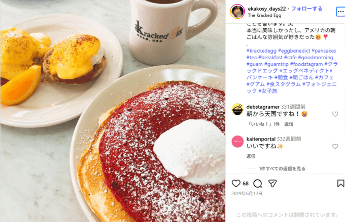 | ⑥ The Kracked Egg | アメリカンブレックファースト | 約$12〜15(約1,900〜2,300円) | 朝食の定番。チャモロベネディクトとアサイーワッフルが人気。パンケーキ9種から選べる楽しさも。 |
