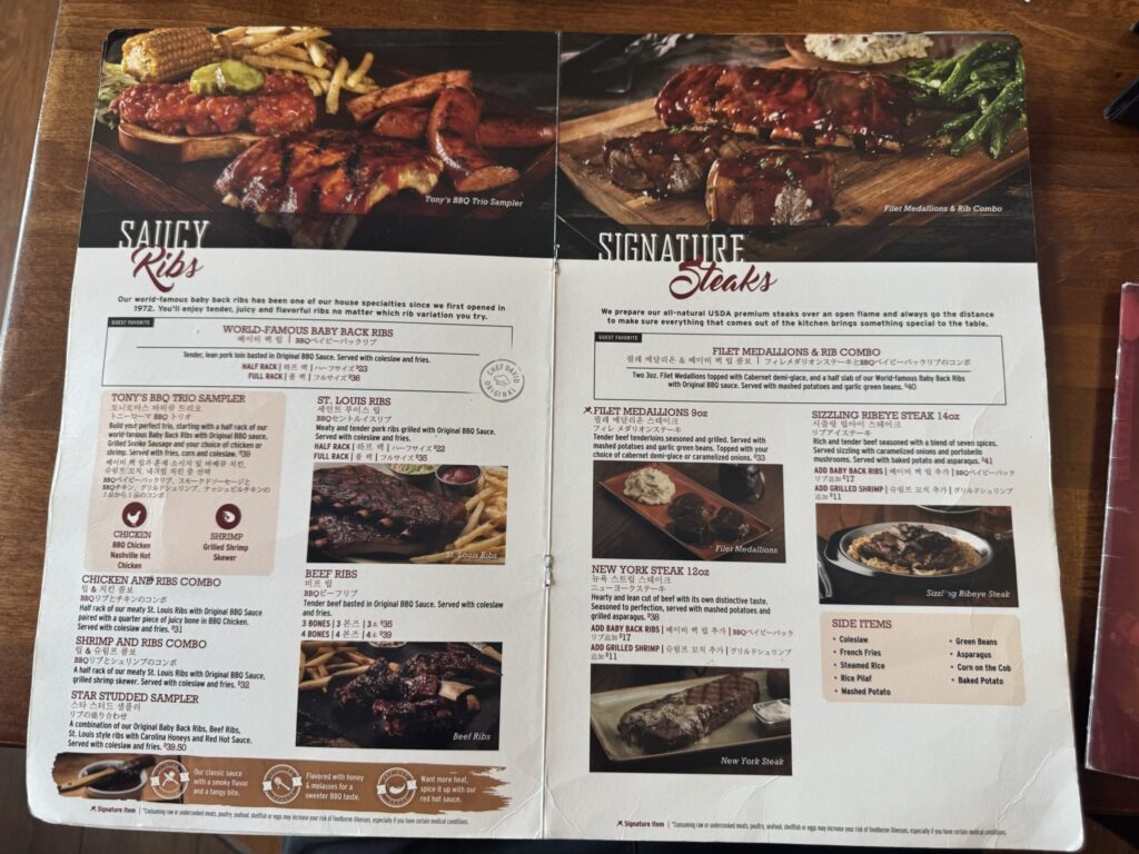 トニーローマといえば、やっぱり外せないのがベイビーバックリブ(Baby Back Ribs)です。