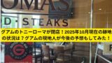 約40年にわたり、地元民にも観光客にも親しまれてきたトニーローマグアム(タムニング)店ですが、2025年8月末をもって閉店することが正式に発表されました。