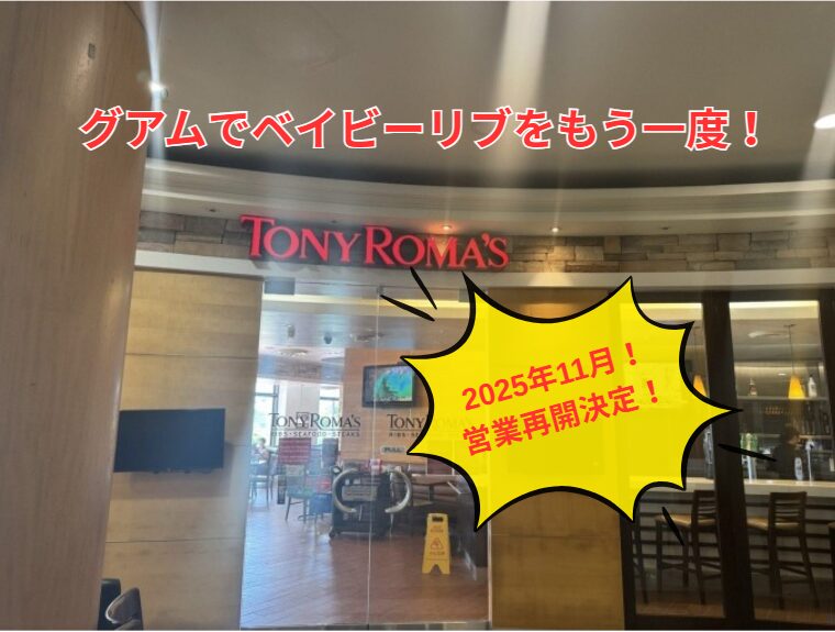 2025年8月31日をもって、トニーローマ(Tony Roma’s)グアム店が閉店することが正式に発表されました。